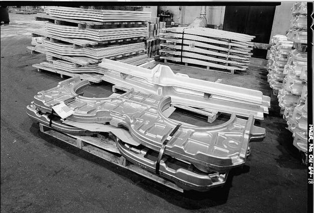 美國鋁業(yè)(Alcoa)公司位于俄亥俄州的克利夫蘭工廠,用于制造F-15戰(zhàn)斗機后機身發(fā)動機段隔艙框架的鈦合金胚料。